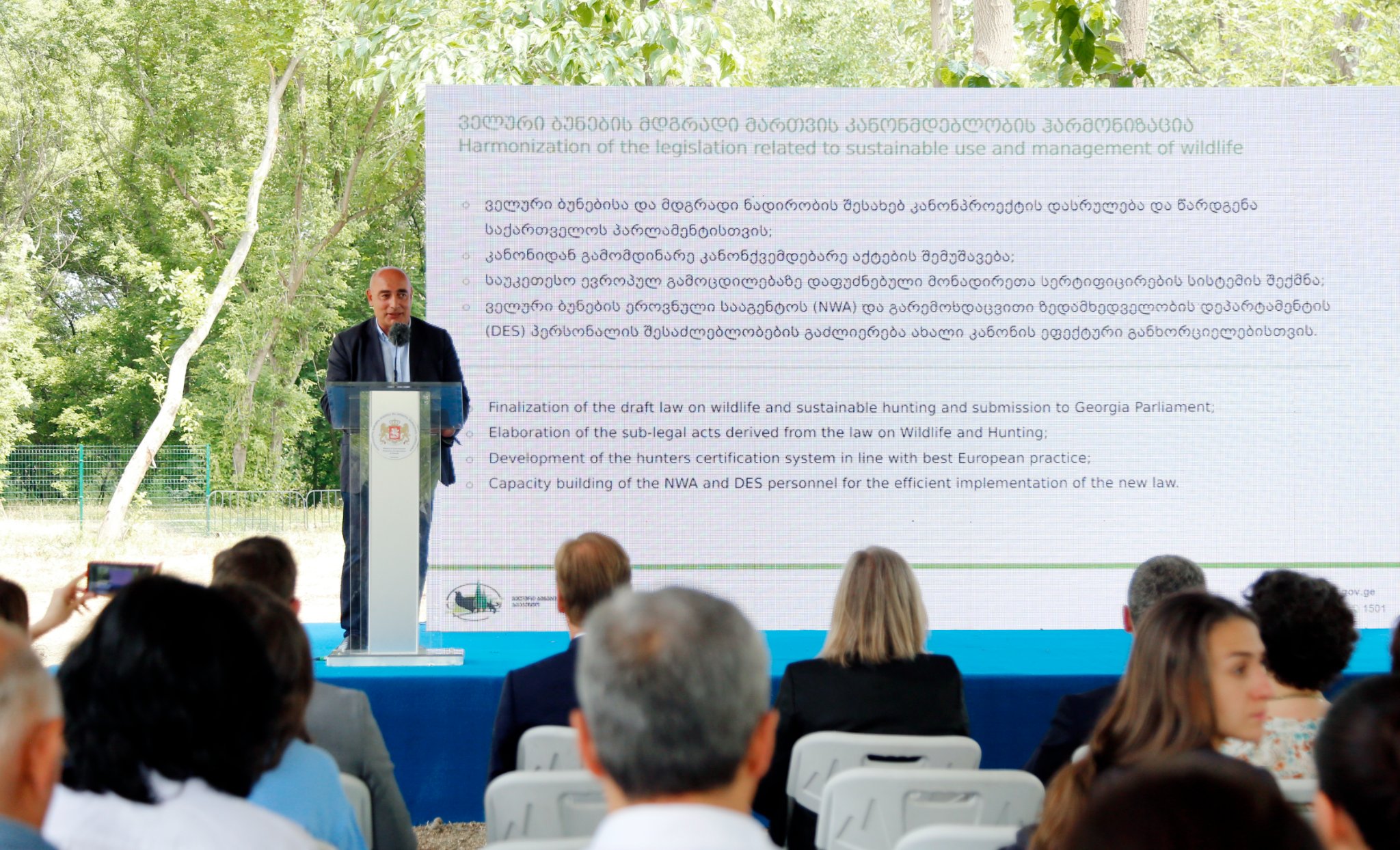 ღონისძიების ფარგლებში, შვედეთის მთავრობის მიერ დაფინანსებული პროექტის „გადავარჩინოთ ბუნება - საქართველო“ პრეზენტაცია გაიმართა. პროექტი, რომლის საერთო ბიუჯეტი დაახლოებით 5,5 მლნ ევროს შეადგენს, მიზნად ისახავს საქართველოს ბუნებრივი რესურსების მდგრადი მართვისა და მართვის ეფექტიანობის გაუმჯობესების ხელშეწყობას ტყეების დაცვის, ბიომრავალფეროვნების შენარჩუნების, დაცული ტერიტორიებისა და საქართველოში ჰაერის ხარისხის გაუმჯობესების მიმართულებით. აღნიშნული პროექტი სრულ თანხვედრაშია საქართველოს ევროკავშირთან ასოცირების ხელშეკრულების პრიორიტეტებთან და მისი განხორციელება მნიშვნელოვნად შეუწყობს ხელს ჩვენი ქვეყნის ევროპასთან დაახლოებას.