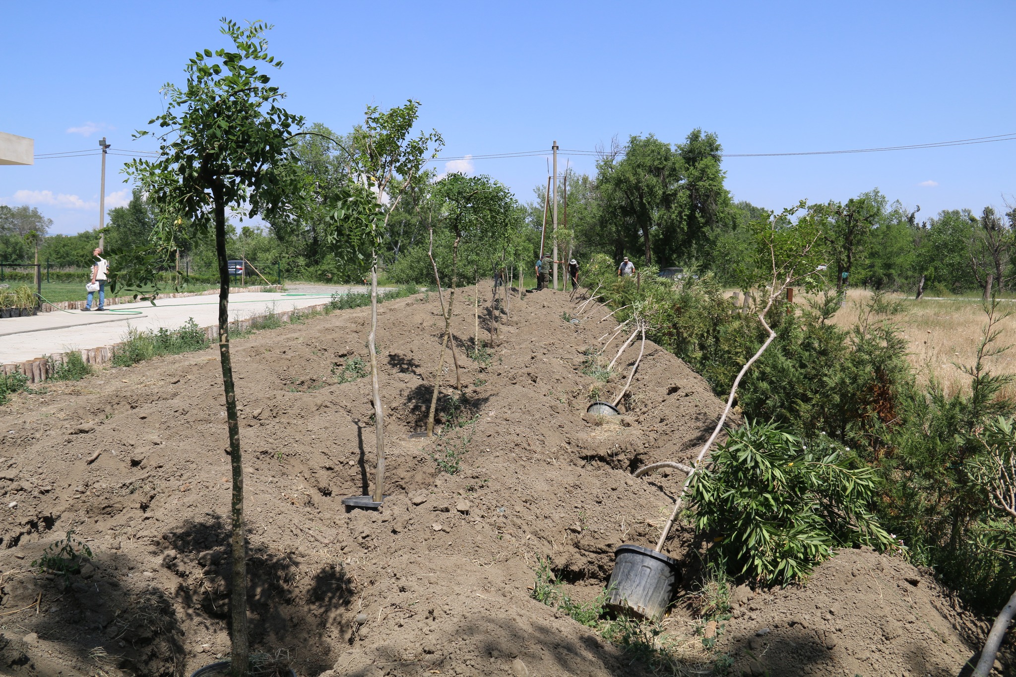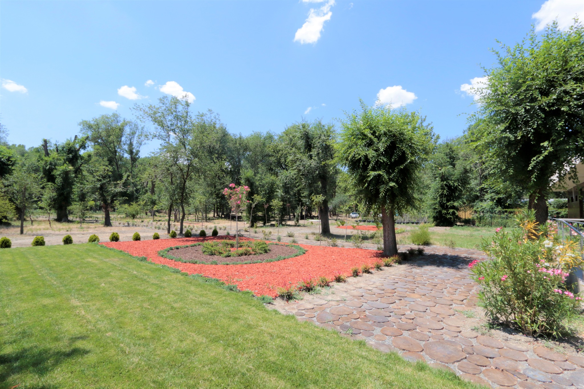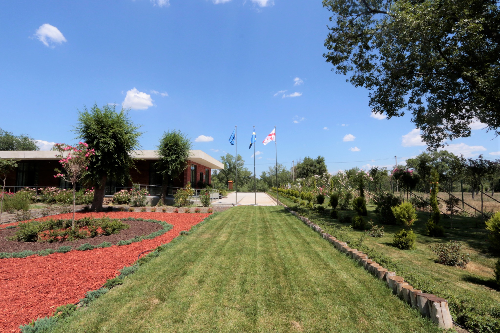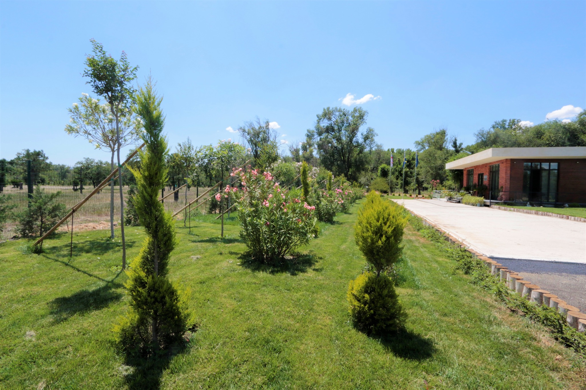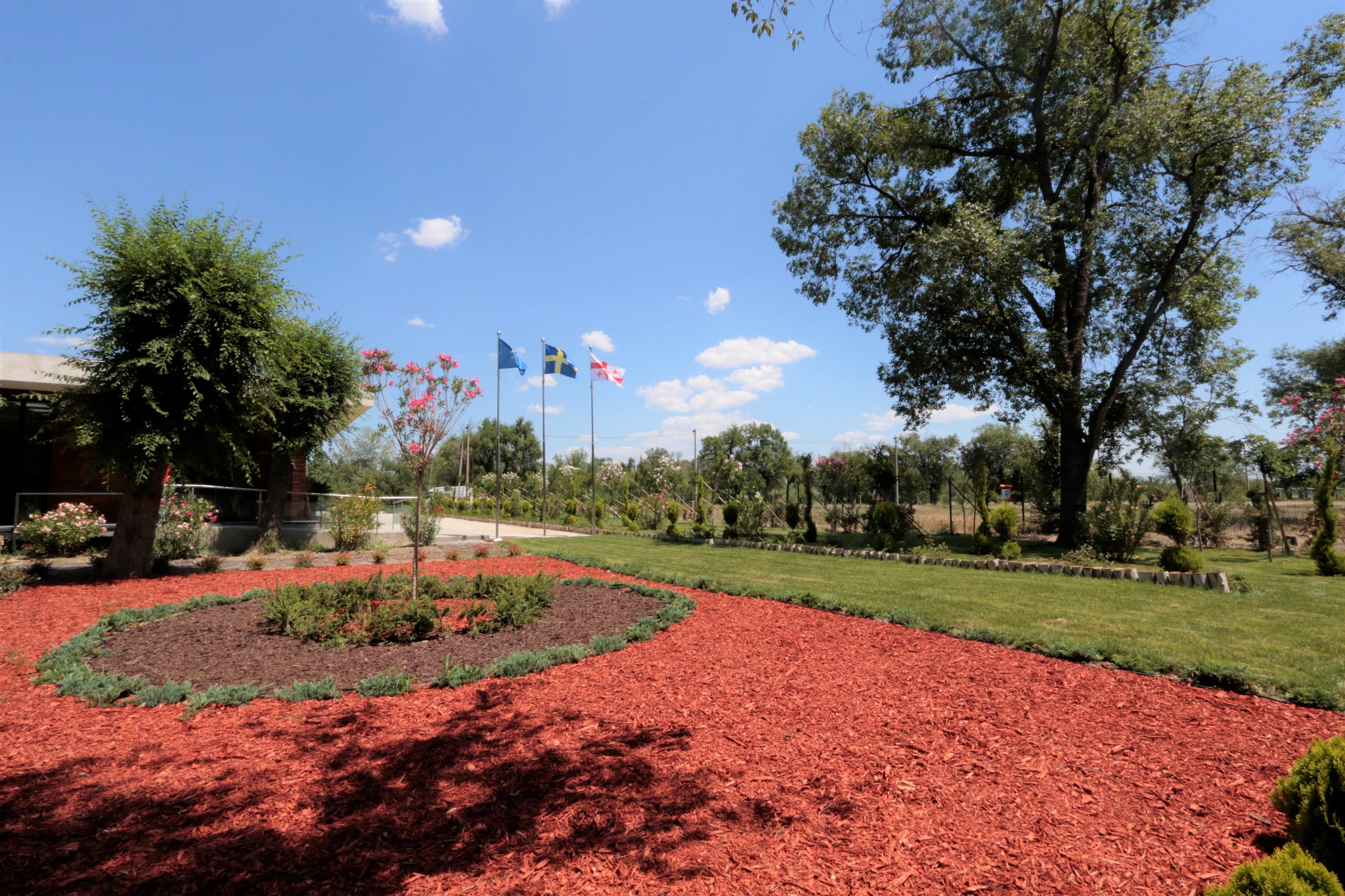 ტერიტორიაზე, როგორც წითელი ნუსხის, ასევე დეკორატიული მოყვავილე და მარადმწვანე მოზრდილი მცენარეები დაირგო, მათ შორის, ძელქვა, თელა, წაბლი, ლაფანი, ელდარის ფიჭვი, ნეკერჩხალი, ირმის რქა, ხემარწყვა, ოლეანდრა შტამპზე, იაპონური სოფორა, ლიმონის კვიპაროსი ბურთის და სპირალის ფორმის, ფოტინია ბურთის ფორმის, ფიტოსპორუმი, ფშატი, წყავი, ღვია გართხმული, ტუია ნანა, იაპონური კვიდო, მინდვრის ნეკერჩხალი, ლოროპეტალუმი, ლავანდა ბურთის ფორმის, ჩიტავაშლა, წივანა, ჟასმინი და ნანდინა.